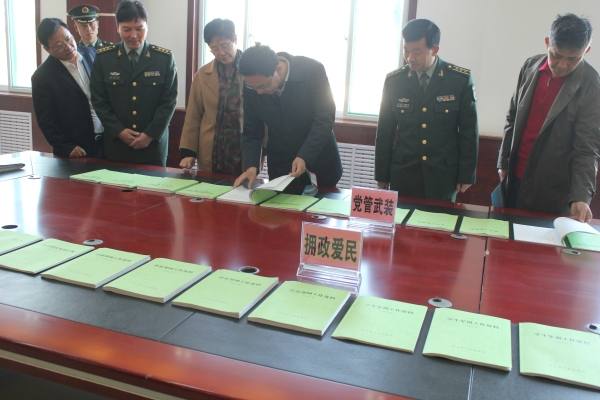 山东省双拥考评组检查县人武部双拥档案资料